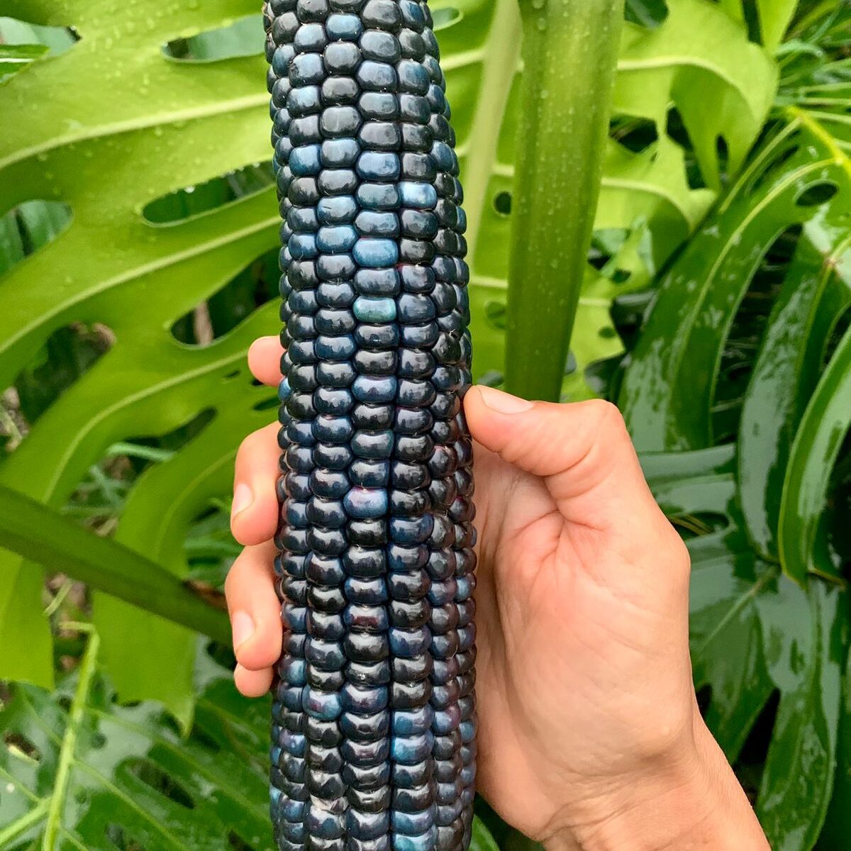 Este precioso maíz de porte mediano y tonalidades azules, moradas y lilas lo recibimos hace algunos años de una conocida que trajo la semilla de Guatemala y lo reprodujo en su finca en San Ramón de Alajuela. Nosotros llevamos unas 3 generaciones reproduciéndolo en una de nuestras fincas productoras, buscando adaptarlo a las condiciones de nuestro país. Es una variedad bastante productiva, se puede consumir tierno o también seco para masa o harina, chicha, mazamorra, etc. Su color morado denota que contiene muchas antocianinas, las cuales tienen propiedades antioxidantes que benefician a la salud.